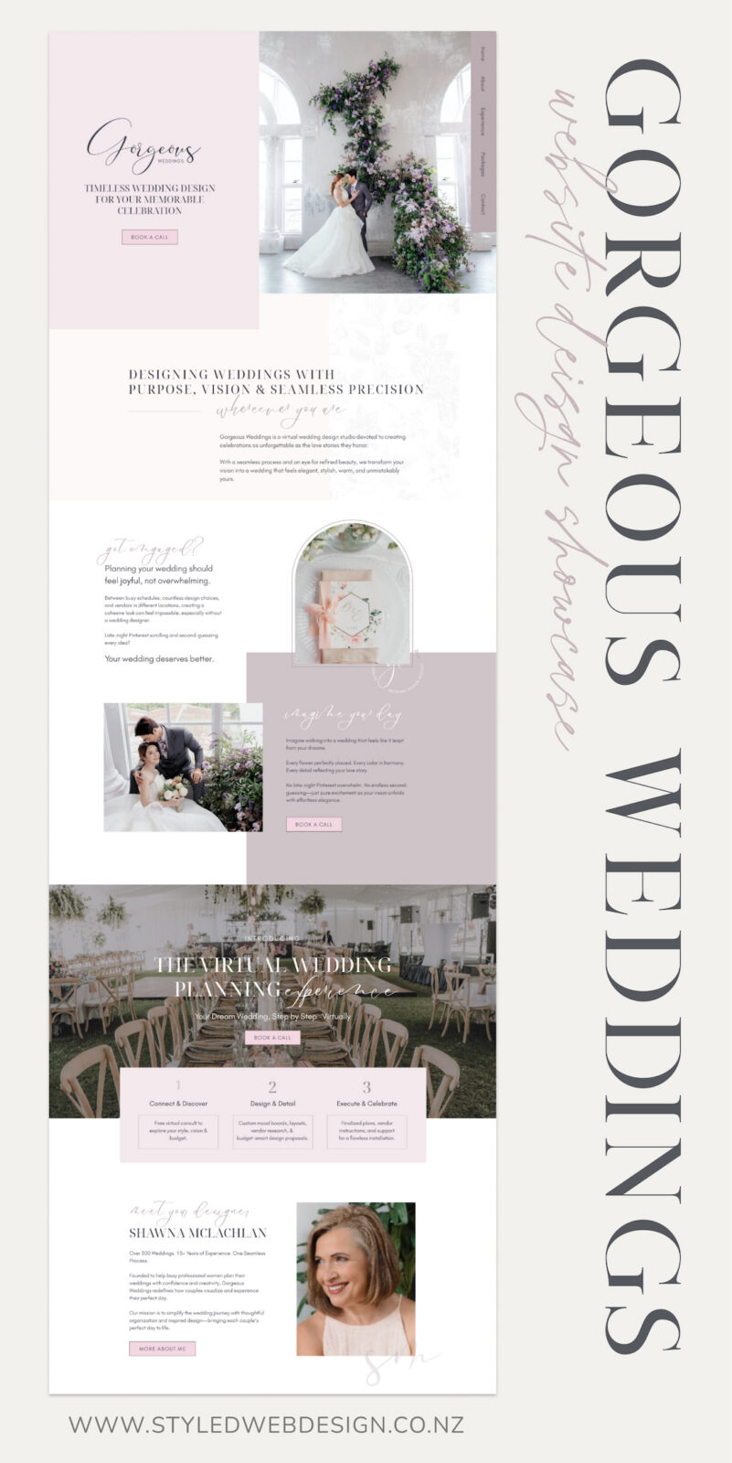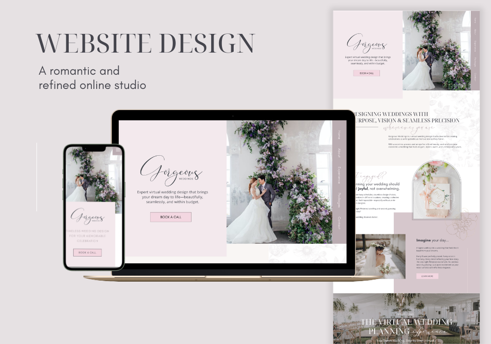 The final brand and website for Gorgeous Weddings reflect the beauty and elegance of the weddings the planner creates.