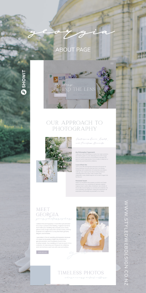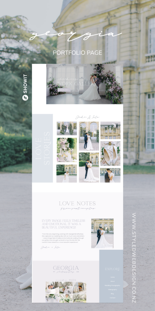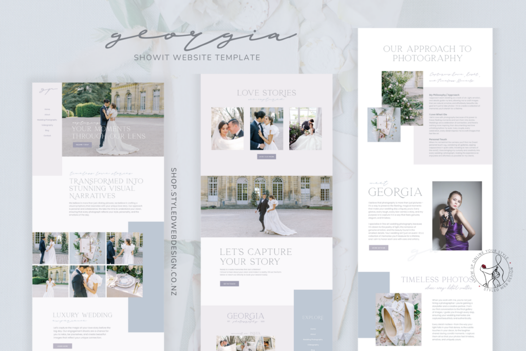 The Georgia template was created specifically for luxury photographers, featuring:
